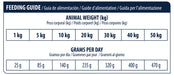 Analitinės sudedamosios dalys: žali baltymai 24.0%, žali riebalai 17.2%, žalia ląsteliena3.5%, žali pelenai 7.5%, Omega 3 0.9%, linolo rūgštis (Omega 6) 3.2%.