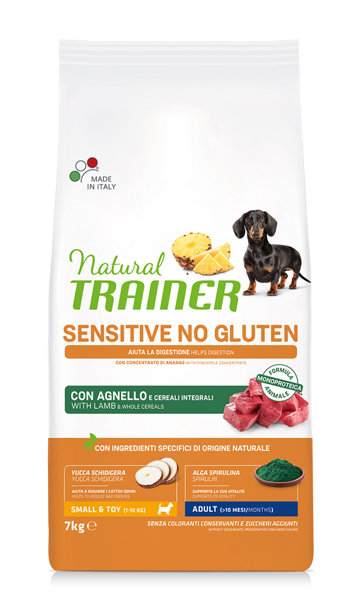 Peržiūrėkite visą informacijąNATURAL TRAINER DOG SENSITIVE NO GLUTEN ADULT MINI LAMB—Visavertis pašaras suaugusiems mažų ir itin mažų veislių šunims su ėriena. Sudėtis: dehidra...
